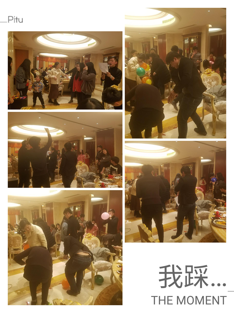 第四个节目是踩气球,嘭嘭嘭,看着一个个卖力踩气球,游戏进入高潮!